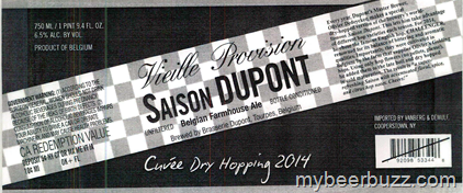 Today we get to see Saison Dupont Cuvee Dry Hopping 2014. This beer is a