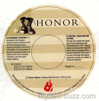 Here’s a new one coming from Emmaus PA’s Funk Brewing. This is Honor Saison and
