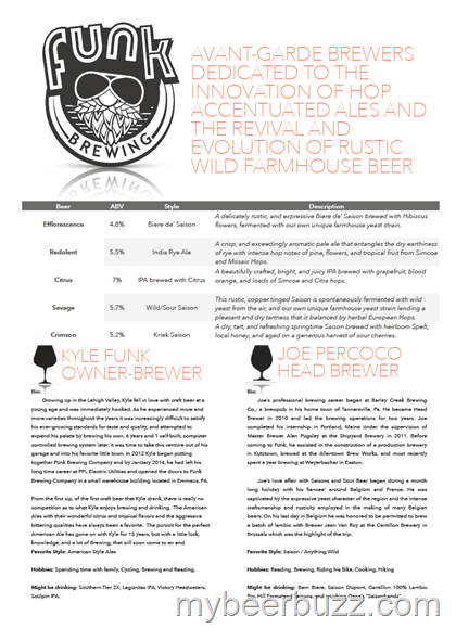 Our pal Joe Percoco has landed in Emmaus PA at Funk Brewing. Joe tells me