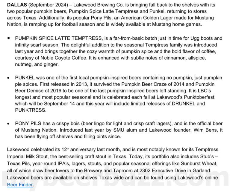 WHAT: Lakewood Brewing Co. has been a staple in the DFW and Texas craft beer