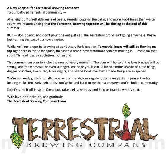 Terrestrial Brewing Announces Closure In Cleveland, OH