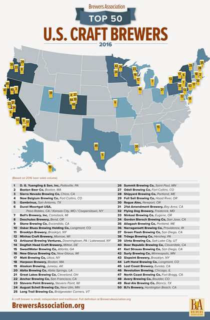 Brewers Association Announces Top 50 US Craft Breweries Of 2016