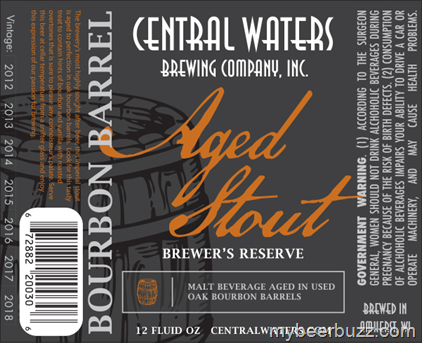 Today we get to see the 12oz bottle label for Central Waters Brewer’s Reserve Bourbon