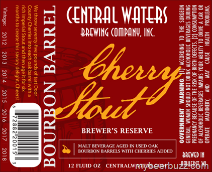Today we get to see the label for Central Waters Brewer’s Reserve Cherry Stout. This