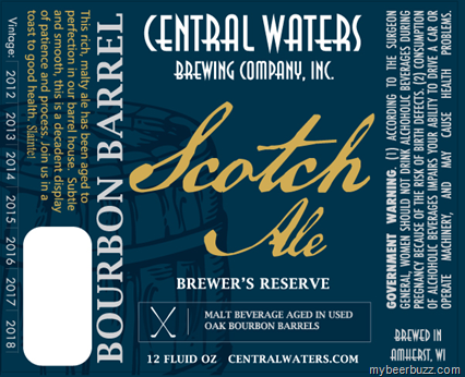 Today we get to see the label for Central Waters Brewer’s Reserve Bourbon Barrel Scotch