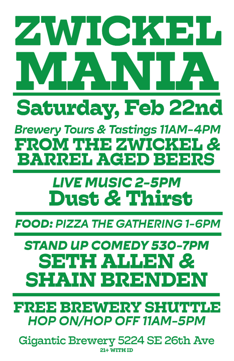 Zwickelmania at Gigantic this Saturday, Feb 22 + New OUT OF THIS WORLD Beer