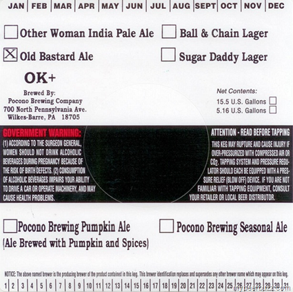 Lion Brewery / Pocono Brewing – Old Bastard, Other Woman IPA, Ball & Chain Lager, Sugar Daddy Lager & Pumpkin Ale