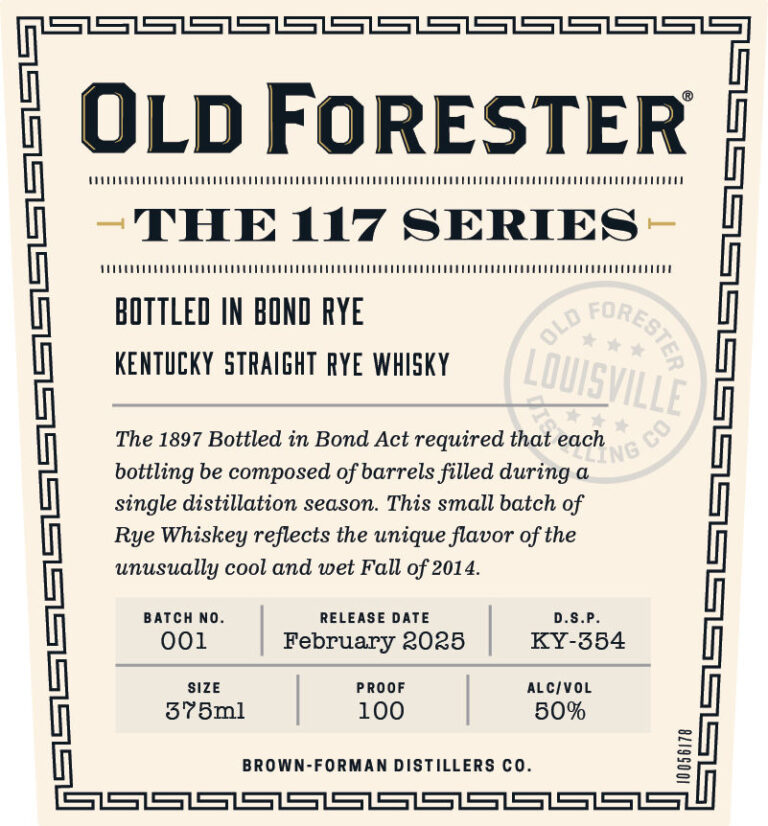 Old Forester The 117 Series Bottled In Bond Rye Whiskey 50%-AbV 375ml bottles. Stay tuned