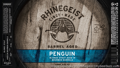 This is Barrel-Aged Penguin from Rhinegeist Brewery. This beer is a Bourbon barrel-aged (3-months) blonde