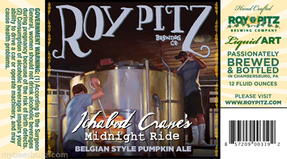 Today we have the bottle label for Roy Pitz Brewing Ichabod Crane’s Midnight Ride. This
