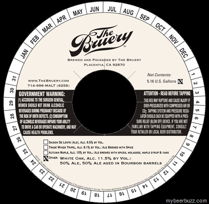 Here’s an interesting new keg label from The Bruery called White Oak. This big-boy will be 11.5% ABV and it’s a 50/50 blend of Ale & Ale aged in bourbon barrels. Stay tuned for details.