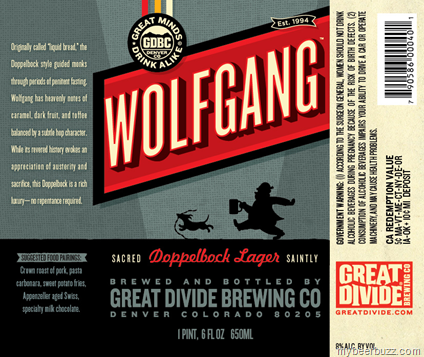 This morning we have a great new brew from Great Divide Brewing called Wolfgang Dopplebock Lager…and yes it is both sacred & saintly. This new brew pairs well with one of my favorites, Swiss cheese…it will come in 22oz bottles and be a big 8% ABV.