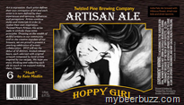Here’s a peek at the Twisted Pine Hoppy Girl Artisan Ale Series beer. This is #6 of a series of 12 beers coming in 2012 as part of the series. Each has unique artwork composed by local artists, this one is called “Hush” by Kate Medlin & a 22oz bottle. On the opposite end we have Hoppy Boy in a 16oz CAN or tall hoppy can as they call it. It uses Chinook, Cascade, Northern Brewer and a few other hops.