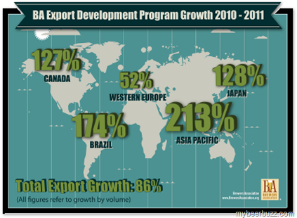 Boulder, CO • April 10, 2012—Based on results from a recently-completed industry survey, the Brewers Association (BA) reports record exports of American craft beer in 2011, and for the ninth consecutive year*. American craft breweries exported over 110,000 barrels of beer in 2011, valued at an estimated $23.4 million—a dramatic increase of 86 percent by volume and 97 percent by dollars over 2010 exports.