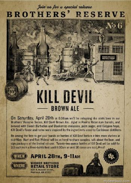 From Widmer Brothers comes news of the release of their Widmer Brothers Reserve Kill Devil Brown Ale on April 28th.