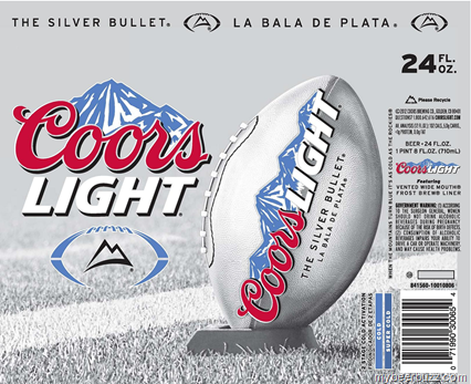 It must be time for the big guys to gear up for football season….up next today we have Coors Light & Coors Banquet 24oz Cans in a football theme. The Silver Bullet (or La Bala de Plata) is 102 calories per 12oz and this can features the cold activation label as well as the “vented wide-mouth frost brew liner.” Coors Banquet is the 2012 commemorative football can and it also carries the cold activation label and vented wide mouth frost brewed liner. Both packages carry the football lacing (and an actual football on the Coors Light Can) on their logo. ![]()