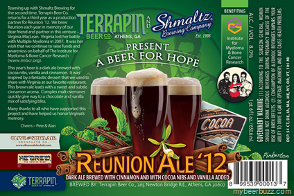 We saw the 2011 version of Terrapin / Shmaltz Brewing Reunion Ale…..back then it was cocoa, vanilla & Chili peppers….and now in 2012 it’s cinnamon, cocoa & vanilla. The 2012 Version is also package din 22oz bottles, but for 2012 it’s bumped up from 7.6% ABV to 8% ABV. The charity is the same and once again this yearly co-brew is created in honor Virginia MacLean. In 2011 this beer was hot, and for 2012 it looks to be sweeter. Can’t wait to try it.