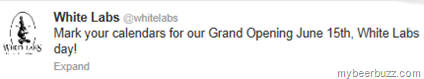 The original story of White Labs Tasting Room is here…and now comes word that the grand opening will be June 15th.  From White Labs: