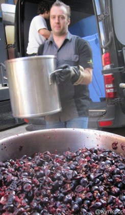 Andy then got Ben on board, Ben sourced the freshly picked and crushed Colorado grapes. Andy, Peter, and our brewers Eric Erman and Josh Willet helped haul the grapes from the van parked in the alley behind our place and into the fermenter. A juicy job for sure.