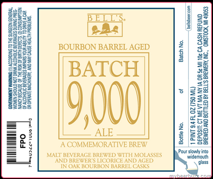 Here’s a new 750ml bottle coming from our pal Larry Bell @ Bell’s Brewery Inc. Today we have bourbon-barrel aged batch 9000 ale. This malt beverage brewed with molasses & brewers licorice is a special brew to commemorate…you guessed it…the 9,000 batch of beer at Bell’s.