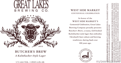 Here’s an interesting new label from Great Lakes Brewing for Butchers Brew Kulmbacher-Style Lager. This is a 22oz bottle and it comes in at a mild 5.7% ABV. This beer celebrates Cleveland’s West Side Market Centennial