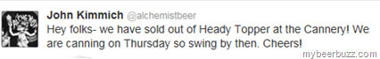 Despite their work to double production, The Alchemist is again tweeting that they are out of Heady Topper @ the brewery. Good news is they are canning another batch tomorrow.