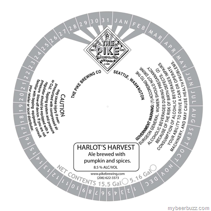 Sometimes you simply can’t resist a beer name…so yes…I couldn’t resist posting this one. Today we have Pike Brewing Harlot’s Harvest Ale—brewed with pumpkin & spices. This is keg-only and it will come in at 8.5% ABV.