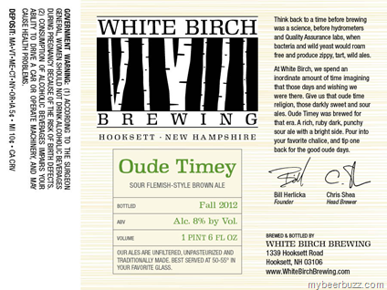 Here’s a new one from White Birch called Oude Timey Sour Flemish-Style Brown Ale. Oude Timey will be packaged in 22oz bottles and come in at 8% ABV and it is brewed to honor the days when wild yeasts “roamed free.”