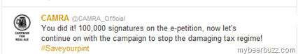 The original post regarding the pub tax and the CAMRA petition is here…and now according to CAMRA they have reached 100,000 signatures already.