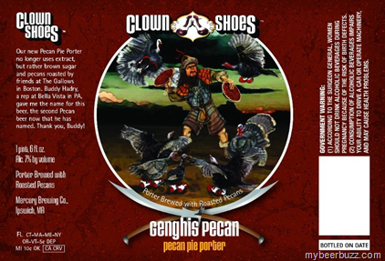 Here’s a peek at the latest release from Clown Shoes….Genghis Pecan (Pecan Pie Porter)--porter brewed with roasted pecans.