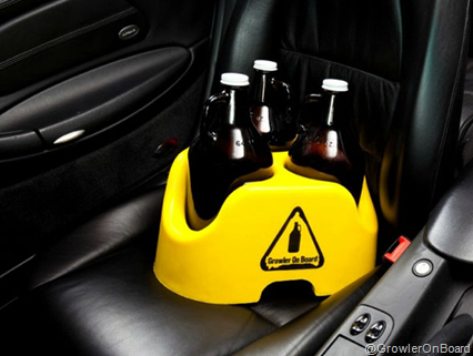 Leave it to some beer-lover out there to realize there’s a need to transport Growlers safely….so why not invent a car seat for growlers….and not just one growler, but THREE! They come in 4 colors and cost about $30 without shipping and the details are here.