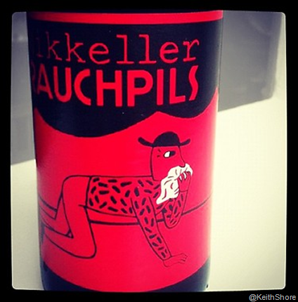 Here’s a photo courtesy of label artist Keith Shore showing off Mikkeller Rauchpils as it is being bottled today. The original label and details are here.