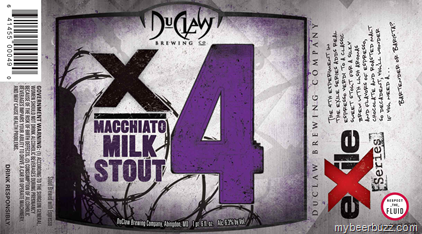 Here’s a new one from DuClaw called X4 Macchiato Milk Stout. This new Stout brewed with Espresso will be packaged in 22oz bottles and yes this marks the 4th experimental Ale in the Exile Series.