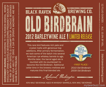 Today we have two new 12oz bottles coming from Black Raven for their Old Birdbrain Limited Release Barleywine. Looks like they are releasing a 2011 and 2012 version and both are a blend of 60% malt beverage and 40% malt beverage aged in whiskey barrels. Both versions of Old Birdbrain will come in at 10.9% ABV. ![]()