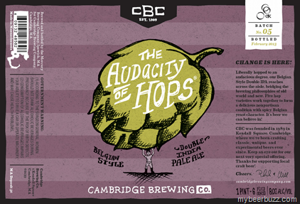 This morning we have a great new 22oz bottle label for Cambridge Brewing Co The Audacity of Hops Belgian-Style Double IPA. That’s quite a mouthful to say and with 5 hop varieties on-board it should be a mouthful of hoppy flavors. Audacity uses Belgian yeast and comes in at 8% ABV.