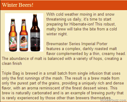 With cold weather moving in and snow threatening us daily, it's time to start preparing for Hibernate-ion! This robust, malty brew will take the bite from a cold winter night.