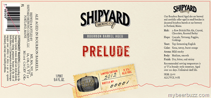 We brought you news of Shipyard’s new bourbon barrel-aged beer series back in Sept. At that time the first two releases: Double ESB & Smashed Pumpkin were available, and now today we have the next release, Prelude. This new brew will also be packaged in the 750ml bottles and aged in bourbon barrels. Prelude uses Cascade, Tettnang, Fuggles & Goldings hops along with British ale yeast and will come in at 9.5% ABV. As a bonus I’ve also included the updated Applehead 12oz bottle label. ![]()
