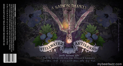 Here’s a new 12.7oz bottle coming from Stillwater Artisanal Ales called A Saison Darkly. This Dark Saison is brewed with a florally mix of Rose Hips, Hibiscus & Schisandra and it will come in at 8% ABV. The label looks great and it is of course another great design by Lee Verzosa.