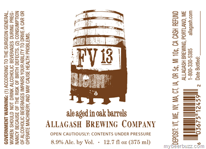 Today we have the label approval and release details from Allagash for their FV 13 ale aged in oak barrels. This new 8.9% ABV brew will be packaged in 12.7oz bottles and release in Feb 2013.