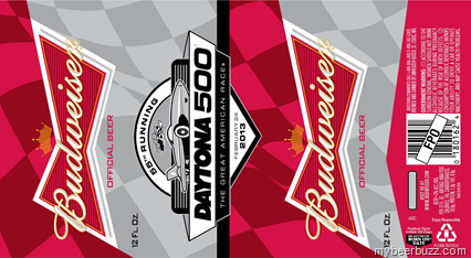 Anheuser-Bush is preparing for the release of several special edition Budweiser cans to commemorate: The 55th Running of NASCAR’s Daytona 500 (Feb 24th 2013, 12oz), The NBA All-Star Game (16oz) and St Patrick's Day 2013 (16oz & 24oz). These are all 5% ABV and 145 calories & 10.6g carbs per 12oz serving.