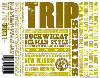 We brought you the previous four New Belgium / Elysian Brewing Trip Series Beers (Imperial Fresh Hop IPA, Blonde, Pink Peppercorn & Farmhouse) and now today we have the next release….Buckwheat Belgian Style--ale brewed with dates, dandelions & buckwheat. The Trip Series are all small batch brews with the tagline “When 2 breweries set off to make great beers together, the end journey is the beginning of every new trip. Care to join us? www.newbelgium.com/trip” Buckwheat Belgian Style will be packaged in 22oz bottles and come in at 7.5% ABV.