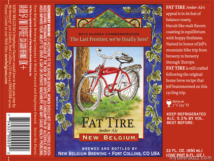 This morning you get your first look at a series of new labels coming out of New Belgium for their flagship Fat Tire Amber Ale. These labels are a series of state commemorative labels and up today we have 2013 Alaska Commemorative “The Last Frontier, we’re finally here!” and the 2013 Louisiana Commemorative “Biking into the Bayou State.” These are 22oz bottles and stay tuned as additional States are added.