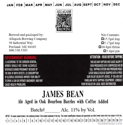 Today we have two new keg labels coming from Allagash…James Bean--ale age din Oak Bourbon barrels w/coffee added (11%ABV and I believe the coffee is being brewed today and James Bean is coming out of the barrels!--Ethiopian Amaro Gayo-the variety used in James Bean: Barrel aged Tripel with coffee), and Coolship Single Barrel One--ale aged in bourbon barrels (8.1% ABV). ![]()