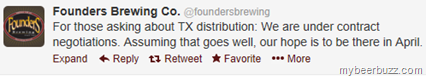 Just a little tweet-info from Founders that they are in negotiations to distribute in Texas….AND…they are aiming for April 2013. Stay tuned for details.