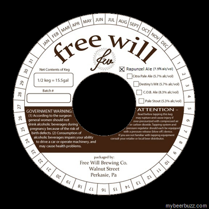 This is a new brew coming out of Perkasie PA’s Free Will Brewing called Rapunzel Ale.  Beyond 7.5% ABV, no details so far….stay tuned.