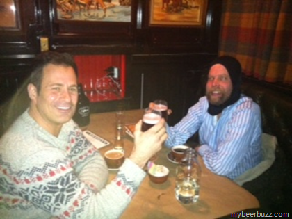 During lunch Will rocked a fierce head dress, much like the mesh helmets worn under battle armor by certain knights. I lugged up a growler of Sixty-One so he could be among the first people to try the beer. He really likes the beer and we chatted about the similarities in the indie music and indie beer communities over lunch and drinks.