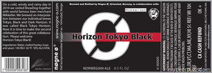 Today we have two new brews coming from Nogne 0…Horizon Tokyo Black is a co-brew done with Mikkeller & BrewDog and it is a “blend” of individual brews from each brewery (Tokyo, Black & Dark Horizon). Horizon Tokyo Black is the 2nd release of this beer (originally called Black Tokyo Horizon), it will be packaged in small 8.5oz bottles and come in at 16% ABV & 100 IBU.