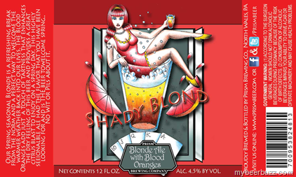 Here’s the 12oz bottle coming from Prism Brewing in North Wales, PA for Shady Blond. This Blonde Ale is Prism brewing’s Spring Seasonal and it uses Blood Oranges and comes in at 4.5% ABV. .