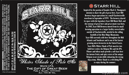 Today we have the 22oz bottle for Starr Hill Whiter Shade of Pale Ale White IPA. This beer “marries” a Belgian Wit & a traditional IPA using Pilsner & wheat malt with Belgian yeast. Whiter Shade comes in at 7.5% ABV. Star Pils will be packaged in 16oz bottles and while this looks a LOT like it may be a 16oz can, the label says “brewed and bottled” so stay tuned.