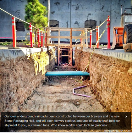 Our own underground railroad's been constructed between our brewery and the new Stone Packaging Hall, and will soon convey copious amounts of quality craft beer for shipment to you, our valued fans. Who knew a ditch could look so glorious?